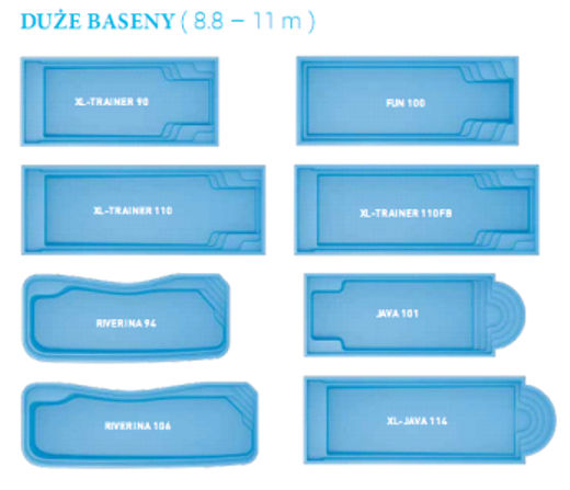 - nowoczesny kształt i kolor basenów, który można dopasować do każdego otoczenia.
