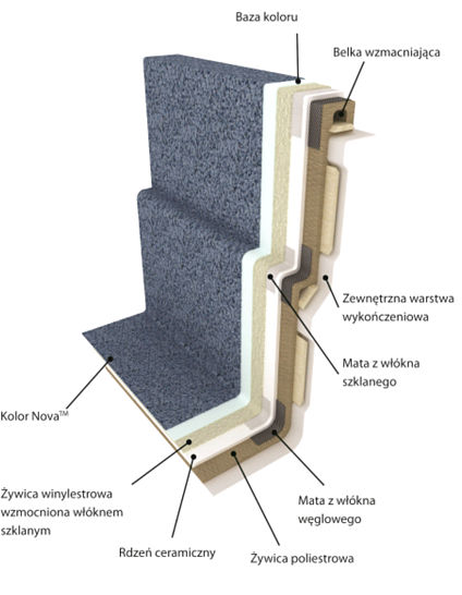 Opatentowana warstwa rdzenia ceramicznego wykonana jest z pyłu ceramicznego zmieszanego z żywicą poliestrową. Zastosowanie takiego nowatorskiego rozwiązania na rynku basenowym zapewnia nieckom basenów Compass dodatkowe zalety:
